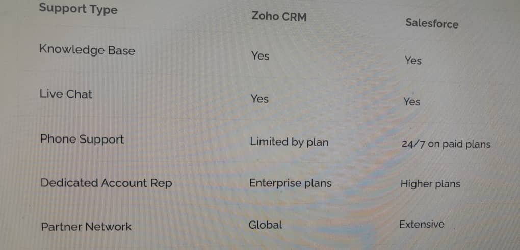 Salesforce vs Zoho CRM-Customer Support Comparison