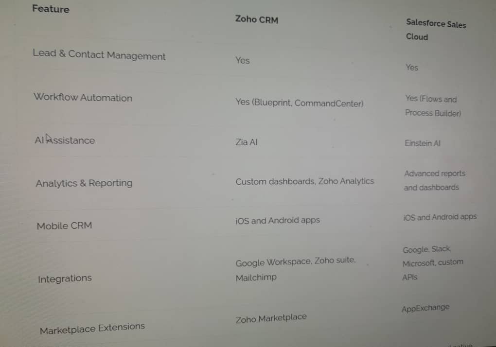 - Salesforce vs Zoho Features-by-Feature Breakdown